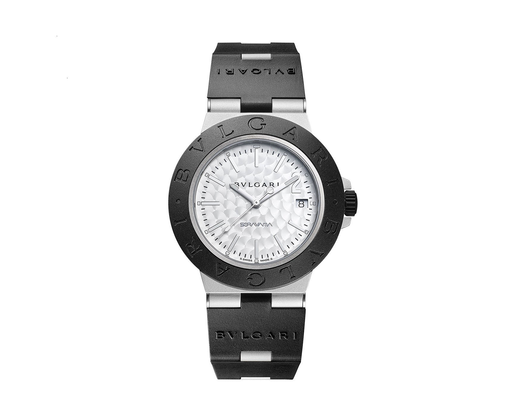 「ブルガリ アルミニウム 空山基 限定モデル」は、時代を超越するイタリアンデザインの魅力とメカニカルの卓越性が見事に融合されたタイムピース「ブルガリ アルミニウム」と、ハイパーリアリズムアーティスト空山基氏の溢れるイマジネーションと才能が出会い形となったタイムピースとなっている。過去と未来の双方が投影された彼の作品には、1930年代と1940年代の古典主義への憧憬、そして航空と自動車の分野における著しい機械的進歩が反映されている。
