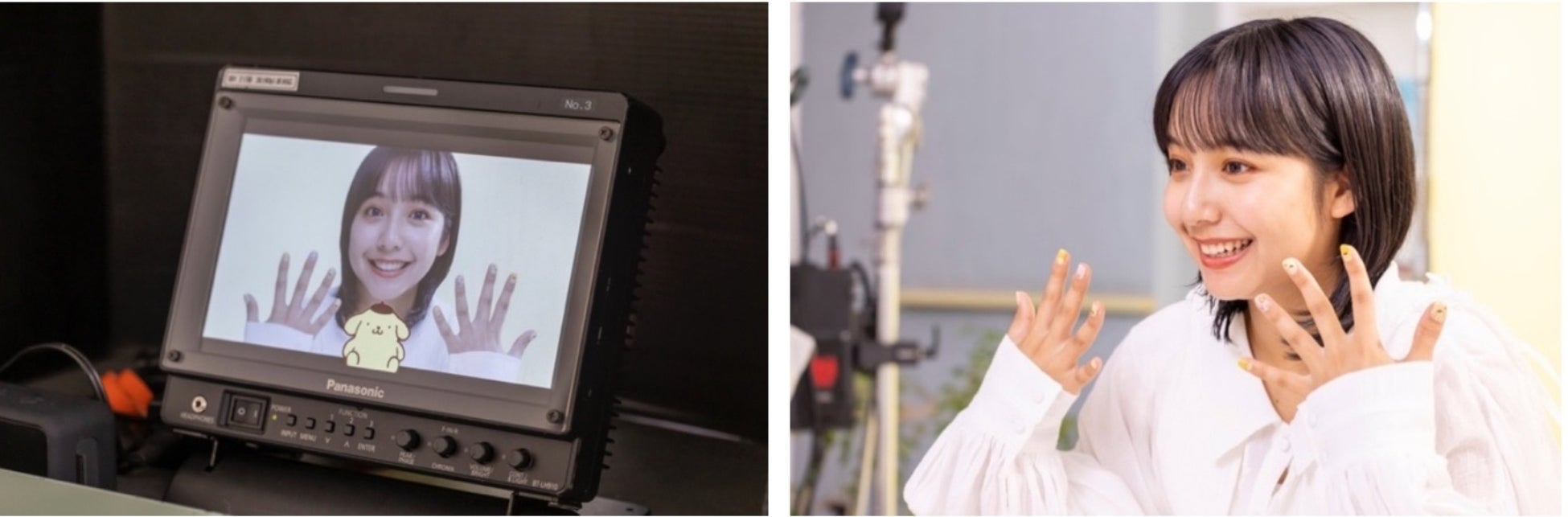 「初めてこういうパステルな、可愛らしい世界観の撮影だったので嬉しかったです。お気に入りのシーンは、ずっと爪にキャラクターがデザインされていて、どれも癒される時間でしたけど、特にマイメロディのシーンはかわいく撮れたと思います!」