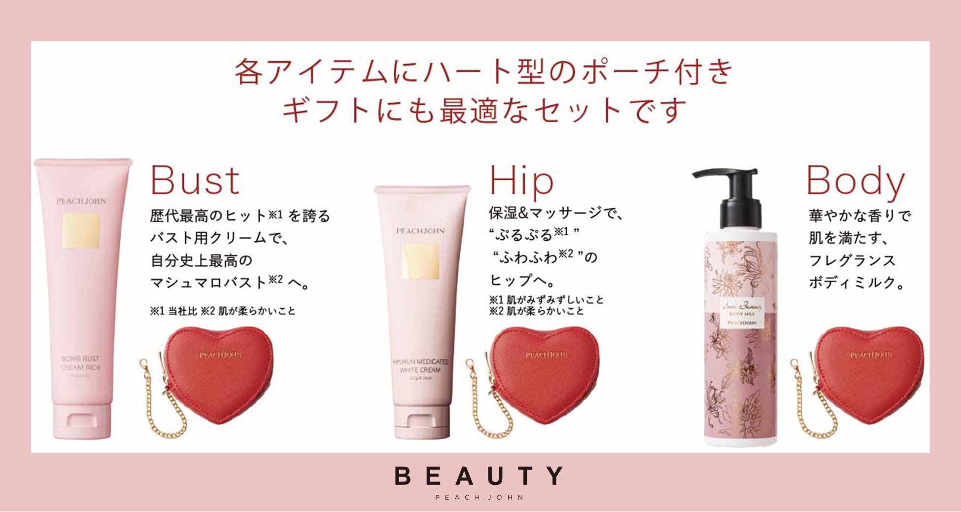 PEACH JOHN BEAUTYには女の子ならではの悩みにアプローチできる商品がたくさんあるし、限定デザインのランジェリーもとっても可愛いので、プレゼントでもらえるとすごく嬉しいかも!