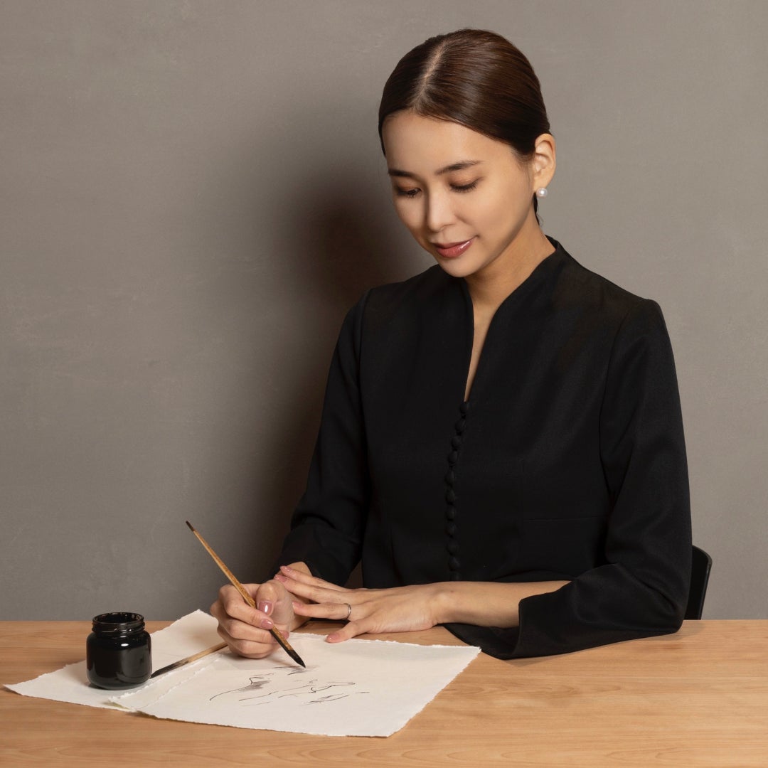 大阪府出身、精華大学デザイン学部卒業。幼少期より書道を学び、墨の滲みの魅力に気づき絵を描き始める。水彩絵の具や墨を用いた滲みと曲線の表現を得意とする。ラグジュアリーブランドとのコラボレーションやイベント、広告や書籍など様々な媒体で作品を展開している。今回、1周年記念をしてLantinamのオリジナル柄を描き下ろして頂いた。