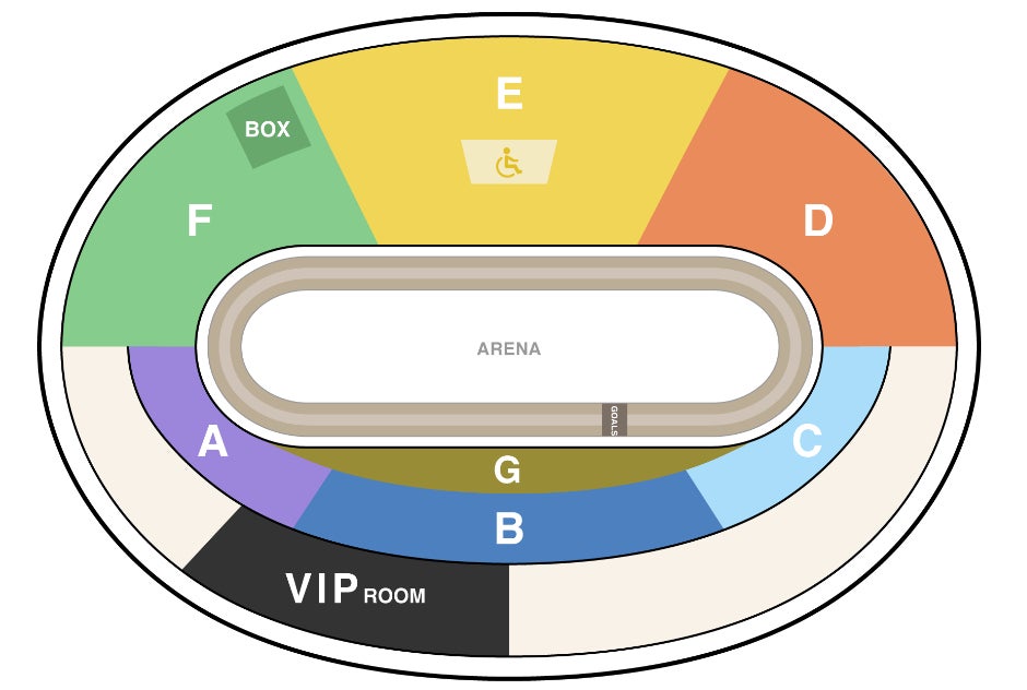一般の観戦席。ホーム側【A・B・C】バック側【D・E・F】エリアのレギュラーシートでPIST6とライブを終日お楽しみいただけます。