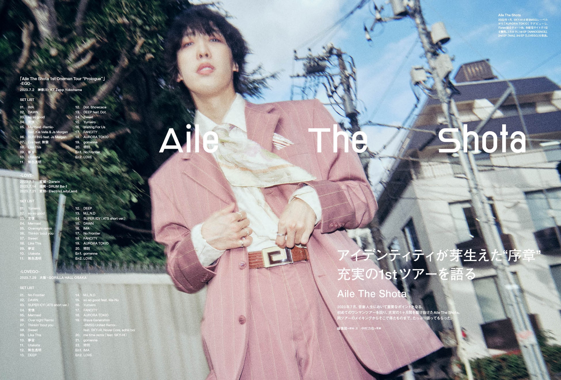 2023年7月、音楽人生において重要なポイントとなる、初めてのワンマンツアーを回り、充実の1ヶ月間を駆け抜けたAile The Shota。同ツアーのメイキングからそこで得たものまで、たっぷり語ってもらった。
