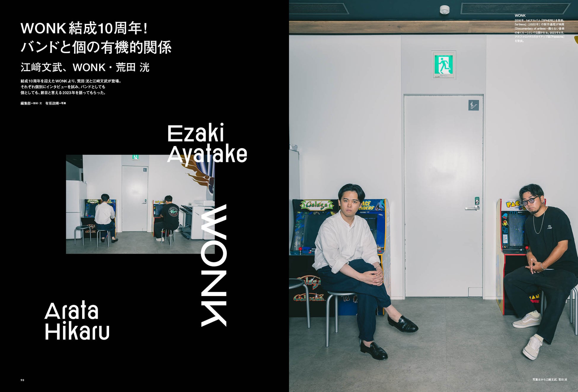 結成10周年を迎えたWONKより、荒田 洸と江﨑文武が登場。それぞれ個別にインタビューを試み、バンドとしても個としても、節目と言える2023年を語ってもらった。
