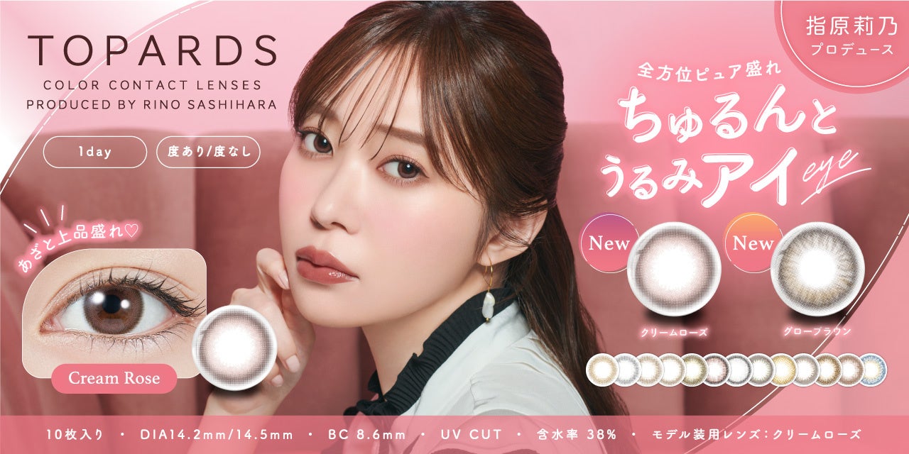 指原莉乃プロデュースカラコン『TOPARDS』、新色は”全方位ピュア盛れ ちゅるんとうるみアイ”になれる2色