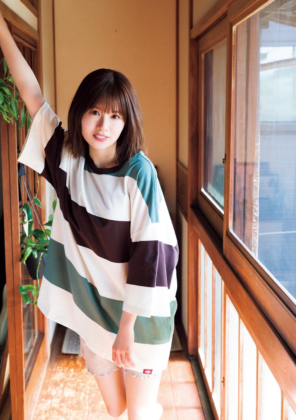 「初出演させていただき、ありがとうございます! 実は撮影日前日に伸ばしていた髪を切ったばかりだったので、ボーイッシュなTシャツ姿も似合っていたらいいなと思います(笑)」