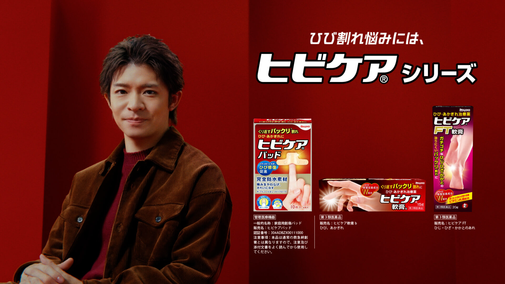 「ヒビケア」のテーマカラーである赤を基調としたビビットな空間に、クールな衣装を身にまとった岸さんが登場します。昨年と同様、ダイナミックなカメラワークとは対照的な岸さんの繊細な演技に注目。「ヒビケアパッド(貼る)」と「ヒビケア軟膏(塗る)」の巨大な商品パッケージに囲まれた空間で、力強いまなざしで「あなたはどっち?」と問いかけ、つらいひびやあかぎれに悩む指先のケアを、力強く、そしてスタイリッシュに表現したCMになっています。