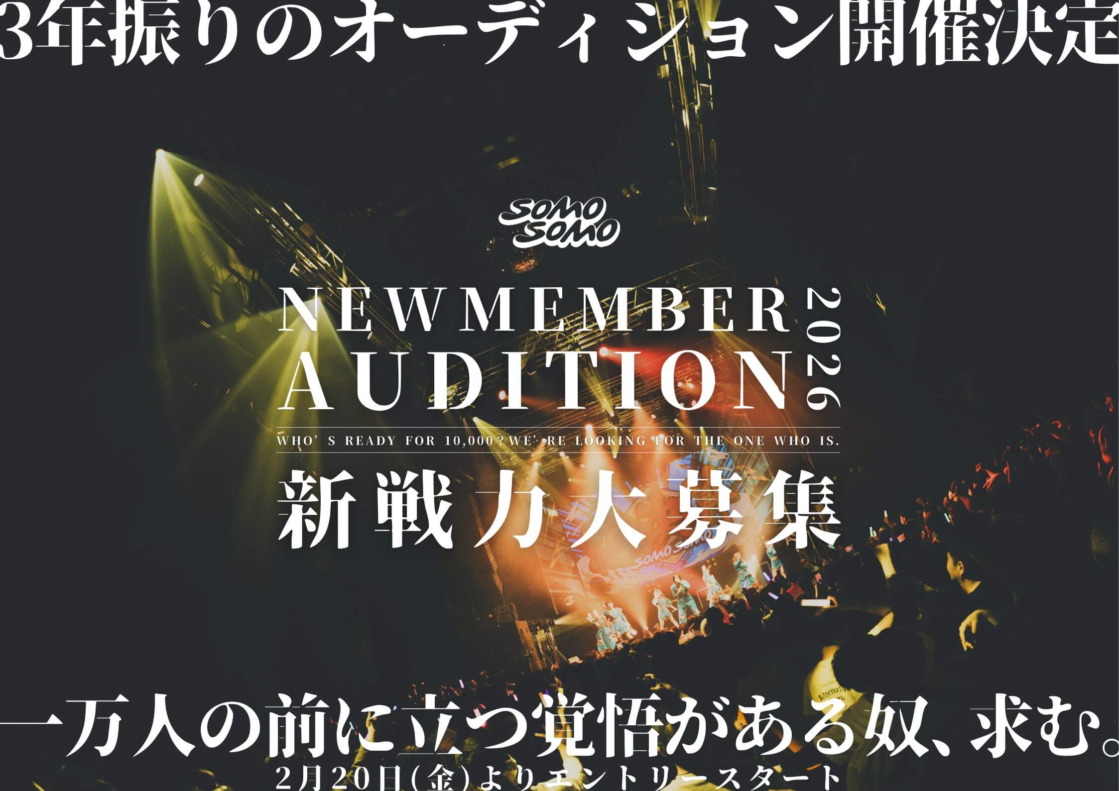 兼ねてよりグループの目標として掲げている横浜アリーナやその先のステージに歩みを進めるべく、”SOMOSOMO 第3章”を共に戦い抜く新メンバーを募集。
