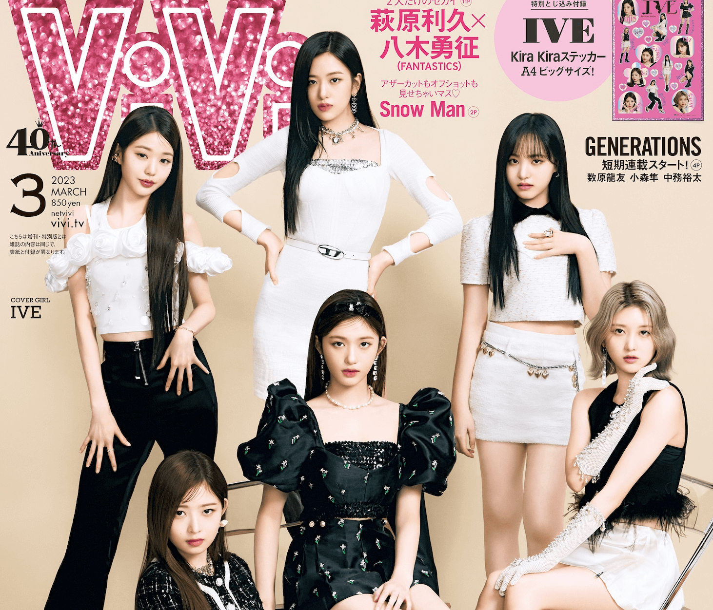注目度No.1 K-POPガールズグループ『IVE』がViVi3月号通常版の表紙に初登場。通常版とじこみ付録は「Kira Kiraステッカー」つき!