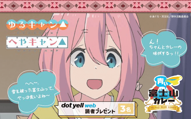 発売から話題殺到!アニメ”ゆるキャン△”×レトルトカレーのコラボ『ゆるキャン△青い富士山カレーなでしこ完食4個セット』を3名様にプレゼント♡