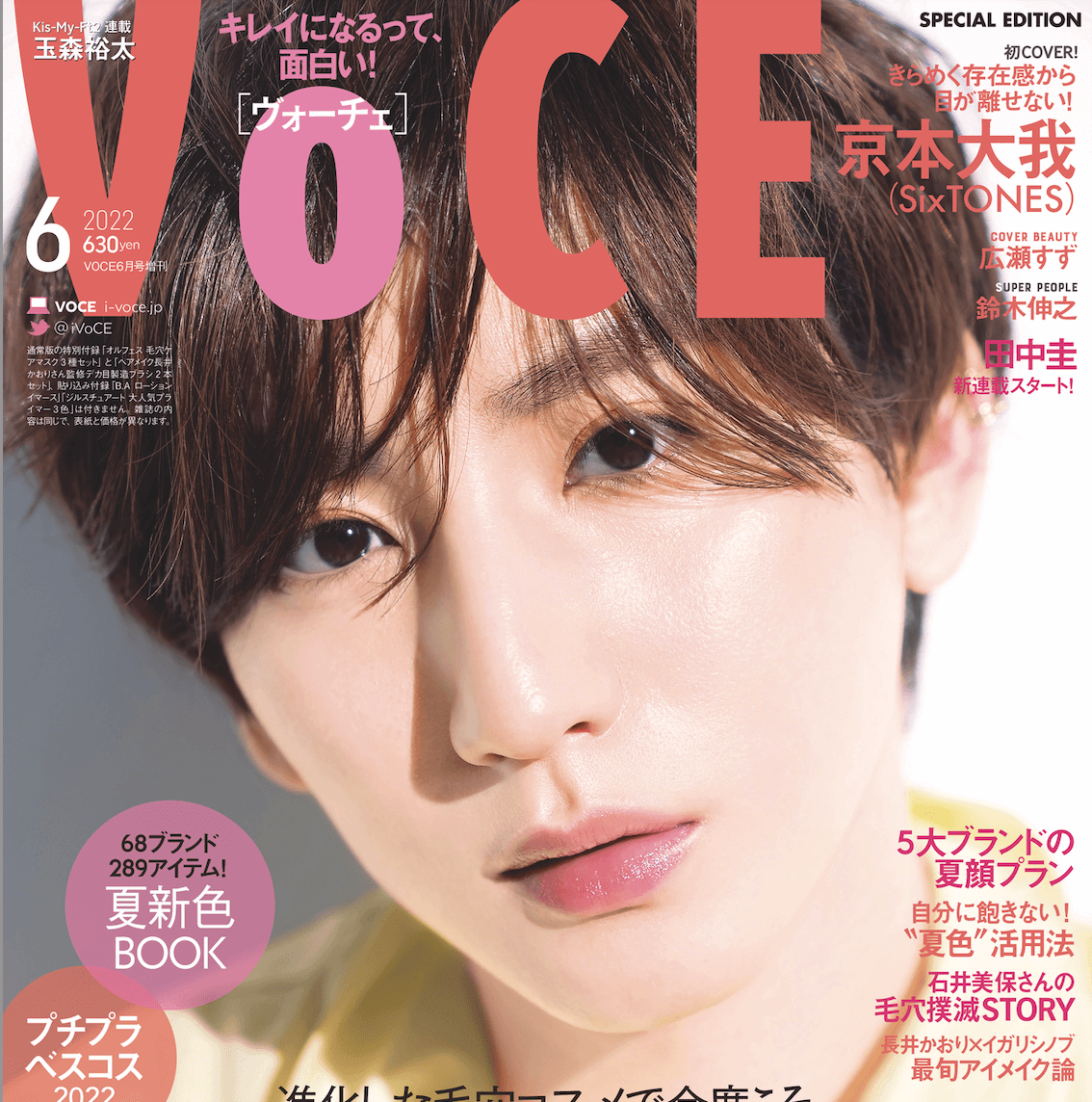 初表紙のSixTONES 京本大我を”色”からひもとく大特集!VOCE6月号<特別版>は4月21日発売