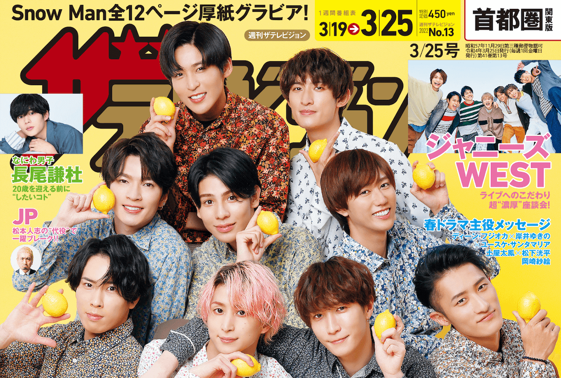 この春の話題作、映画「おそ松さん」に出演するSnow Manが表紙に登場!12ページ厚紙グラビアは、お互いへ花束を贈り合うSP企画!
