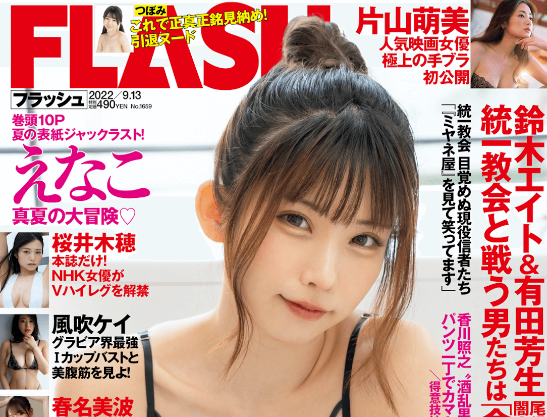 「表紙ジャックキャンペーン」開催中のえなこが表紙&巻頭グラビア10ページに登場!100cm超えバストの桜井木穂&風吹ケイも必見の『FLASH』は8月30日(火)発売