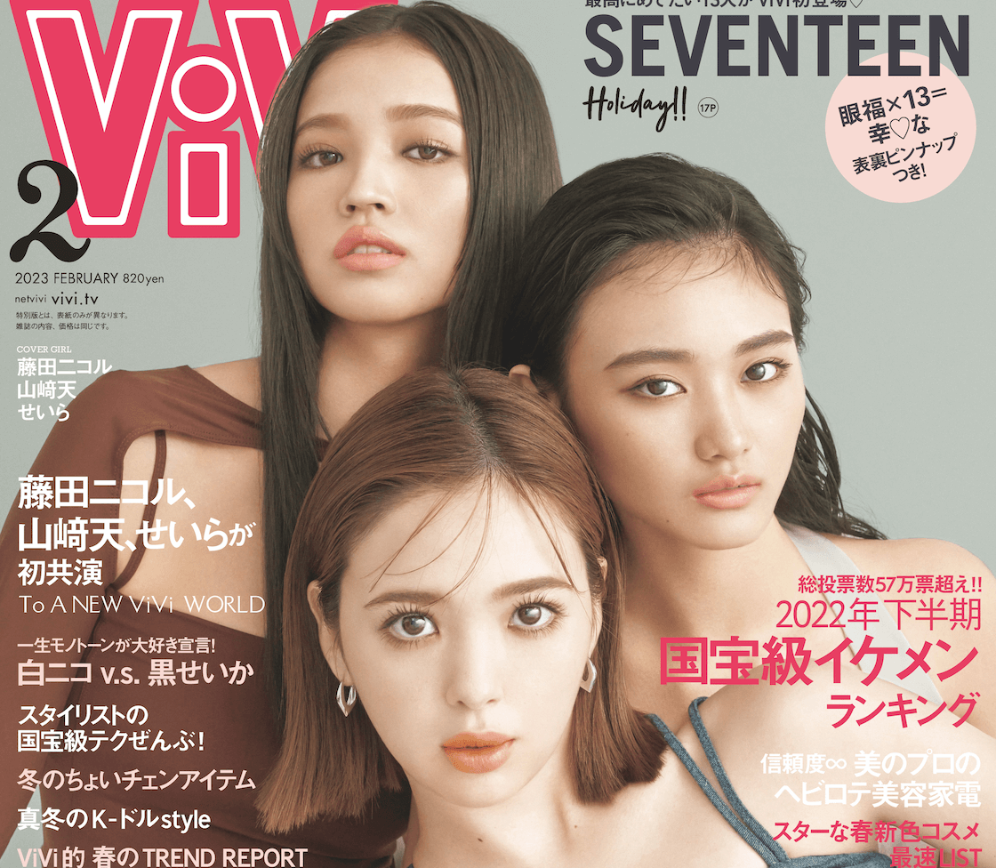 ViVi2023年2月号は藤田ニコル・山﨑天・せいらが表紙で初コラボ!最強ViViモデルがついに集結♡
