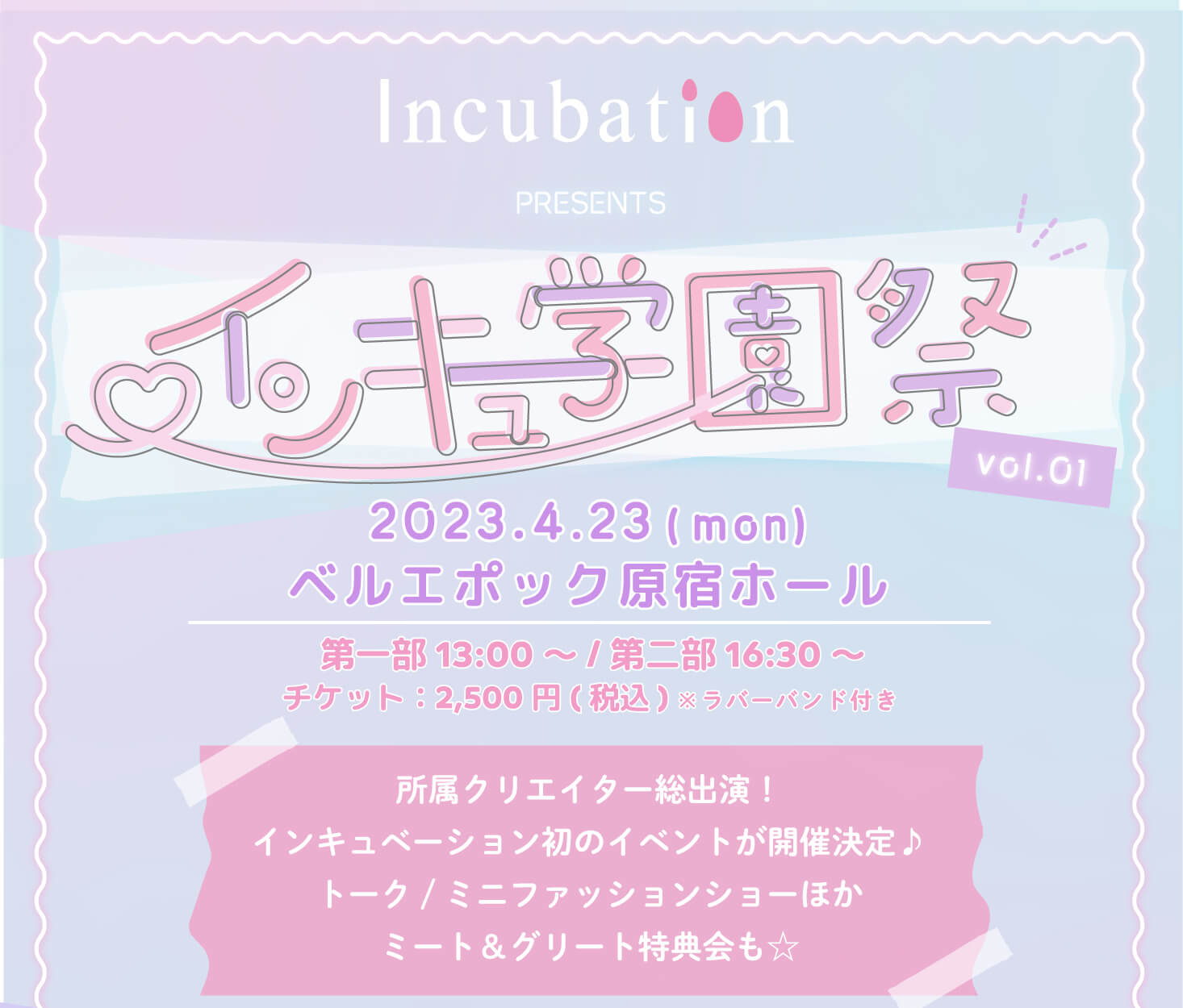 らんや横田未来も出演!イベント「インキュ学園祭 vol.1」が4月23日に開催決定!