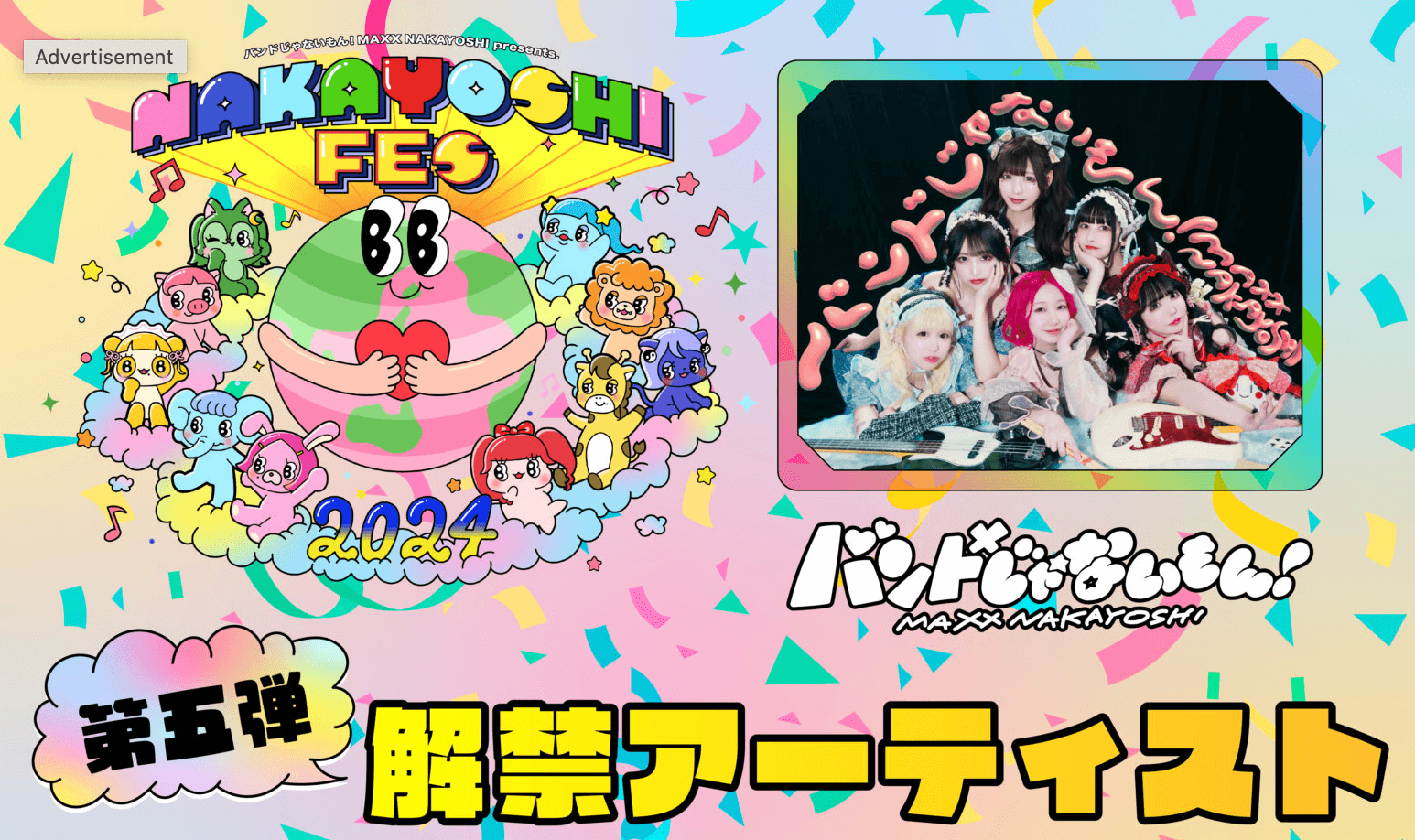ニュース Idol バンもん!主催サーキットフェス「NAKAYOSHI FES.2024」第5弾出演者・NAKAYOSHI STAGE争奪戦・オフィシャルグッズ&応援アイテムが解禁!9/5(木) 20:00