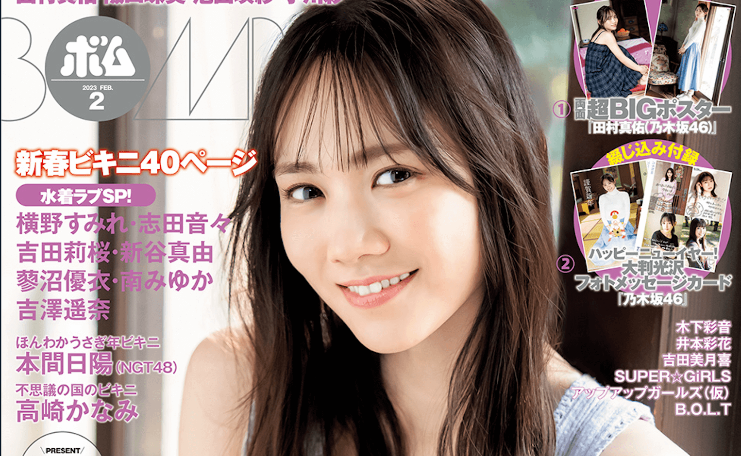 11thバースデーライブの開催も決定!乃木坂46表紙巻頭特集!ボム2月号表紙は田村真佑・裏表紙は阪口珠美が登場!