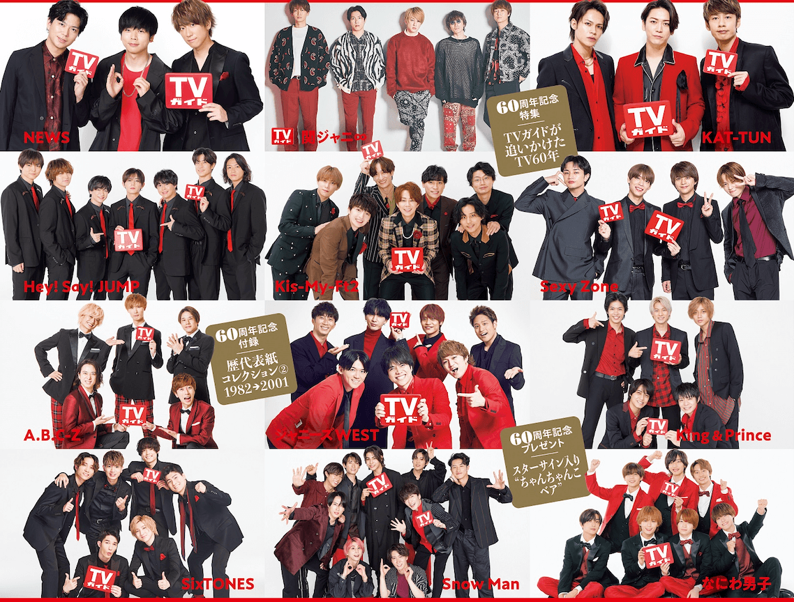 史上初!永久保存版!TVガイド創刊60周年記念特大号の表紙にジャニーズ12グループが登場!歴代ソロアーティスト表紙登場回数NO.1に輝いた木村拓哉のSPグラビアも!
