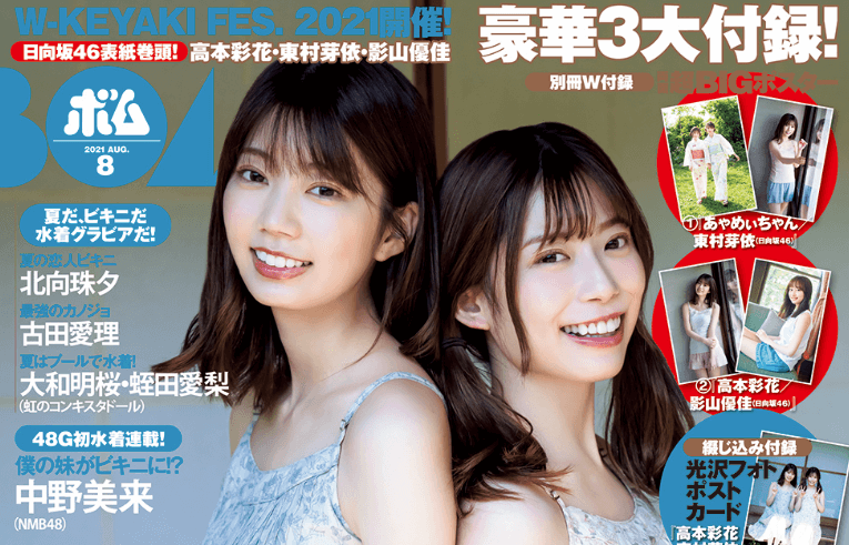 櫻坂46との合同ライブ『W-KEYAKI FES. 2021』を開催する日向坂46が表紙巻頭!虹コン蛭田愛梨大和明桜も登場!BOMB8月号は本日発売!