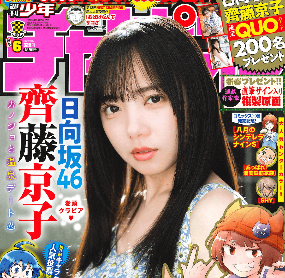 本日1月6日(木)発売「週刊少年チャンピオン」6号の表紙&巻頭撮り下ろしグラビアは、日向坂46の齊藤京子が登場!!