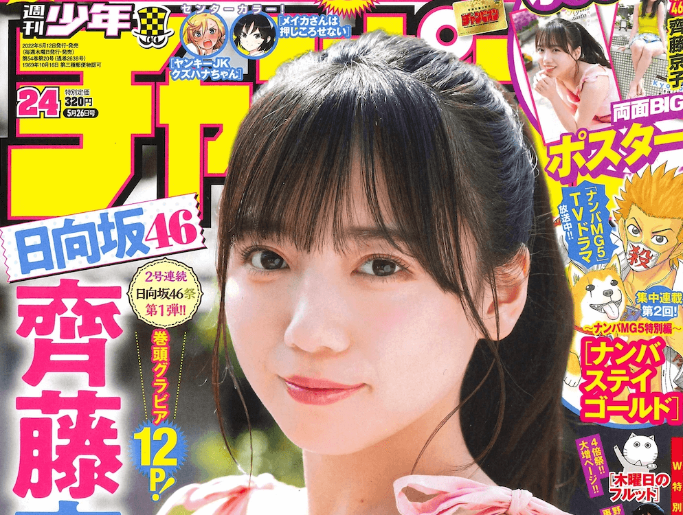 5月12日(木)発売「週刊少年チャンピオン」24号の表紙&巻頭撮り下ろしグラビアは日向坂46の齊藤京子♡