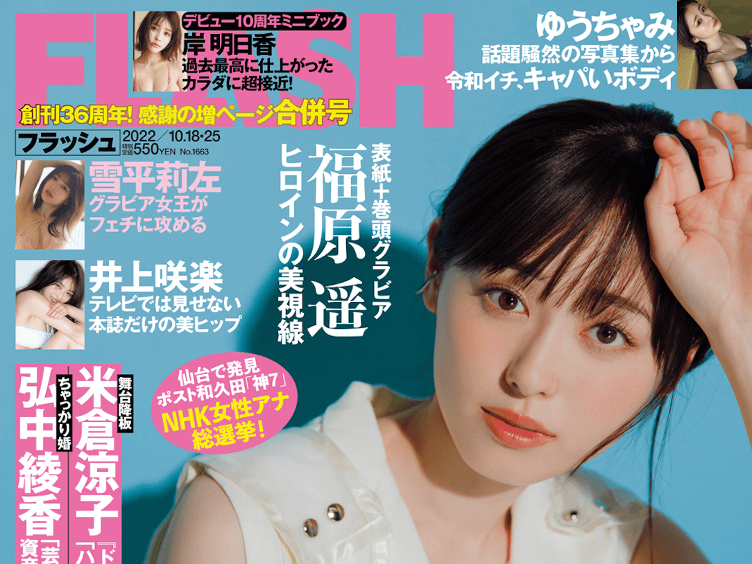 朝ドラ新ヒロインの福原遥が表紙&巻頭グラビアで登場!デビュー10周年の岸明日香、美人すぎるラウンドガール・雪平莉左も必見の『FLASH』特大合併号は10月4日(火)発売