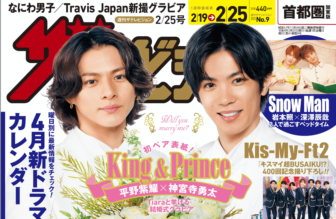 King & Prince 平野紫耀と神宮寺勇太コンビでの初表紙を飾る『週刊ザテレビジョン』白タキシードで結婚式グラビア♡絶賛発売中!